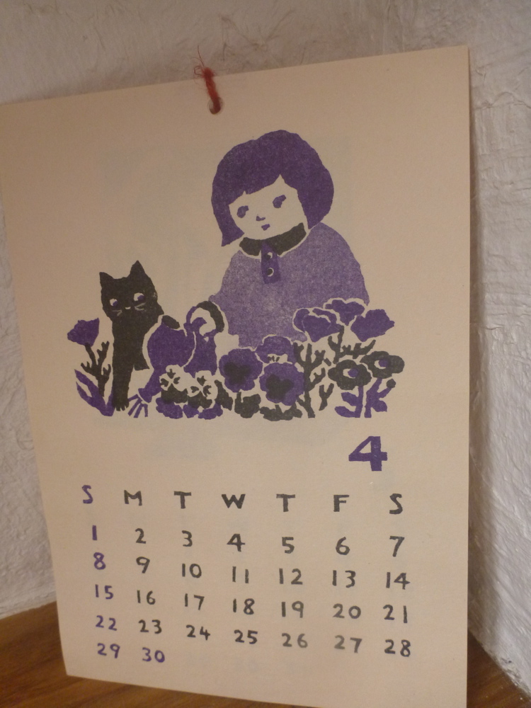 カレンダーを一枚めくり、すみれ色に春を感じます。
