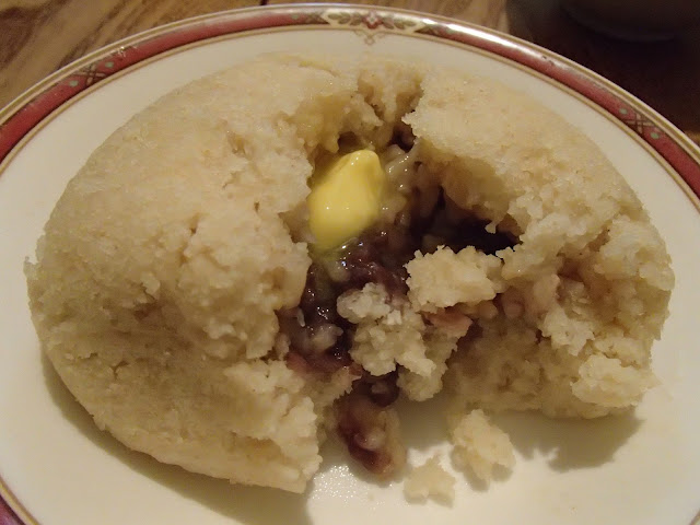 中にはご飯と、上田の自慢焼きやさんのあんこがはいってます。